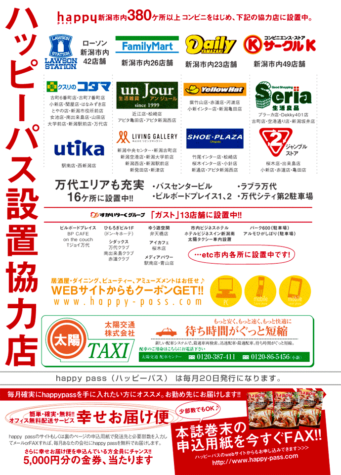Copyright (C) 新潟で居酒屋・飲み会・宴会をおトクに楽しむ - ハッピーパス. AllRight Reserved.