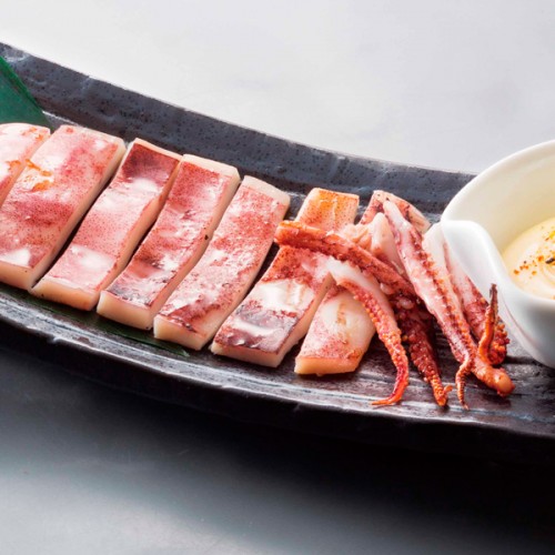 【北海道名物】イカを薄く卸し、素麺のように細く切って、めんつゆで食べる北海道名物料理。付け合せの「ゴロ(肝)」を醤油に浮かせば、特製肝醤油の出来上がり。つるっと一口すすれば磯の香りが口いっぱいに広がります。