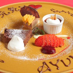 コース利用で!!感謝のメッセージ入りのデザートプレートをサービスしてくれます。
