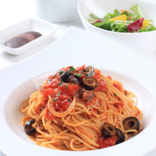 アンチョビの塩味、黒オリーブの酸味が絶妙な味わいの一皿です。