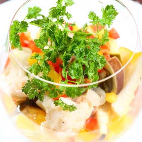 季節の食材を取り入れたコース料理は、和×伊×仏などの様々なスタイルでお料理を楽しめ、食べやすいように個人盛りと大皿でシェアして楽しめるように混合での提供!!食材の味を活かし、美味しさが一段とUPするようにソースにもこだわっております。飲放メニューも充実され人気のハードシードルも飲放。お料理もドリンクも満足です。