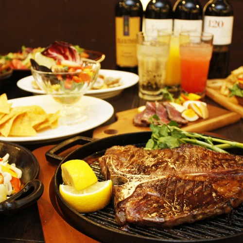 ボリューム満点のTボーンステーキが付いたコースは3300円♪皆でわいわいシェアしよう!!