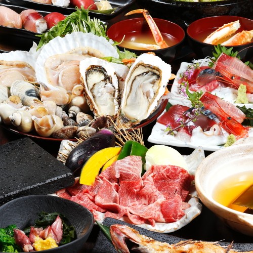 富士山の溶岩石で焼くミネラルたっぷりな焼しゃぶ、本ズワイ蟹と常備50種の地酒が自慢!!