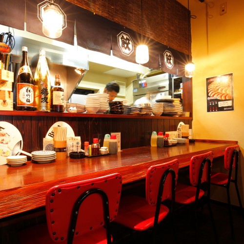 バリエーション豊かな餃子とお酒をリーズナブルな価格で楽しめる大衆居酒屋!!こだわり餃子の具は野菜メインでニンニク不使用。餃子本来の甘みや旨みを楽しむことができ、女性にも食べやすい♪もちろん一切冷凍なし!!お店で毎日700~週末には1200個もの餃子を手作りしている。一番のオススメは「鉄鍋焼き餃子」。アツアツの鉄板にのった餃子をお好みのタレで味わう。タレは全部で6種類あり、その時の気分に合わせて選ぶことができる。テーブル席・カウンター席のほか、最大6名様まで利用できる個室席もあり!!仕事帰りにふらっと寄れる大衆的な雰囲気が魅力で一軒目にも二軒目にもOK♪