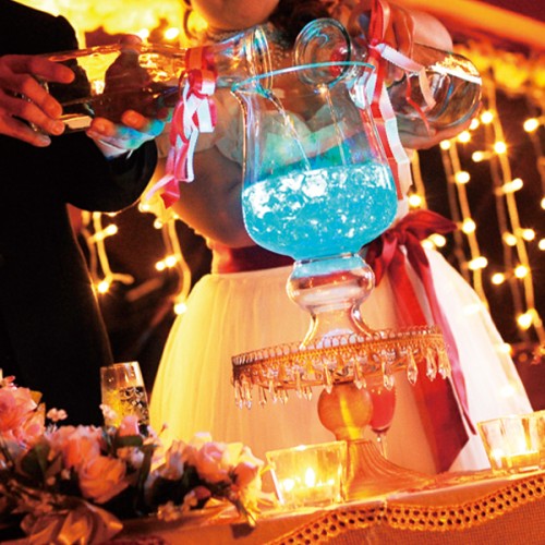 トワイライトカフェの結婚式二次会は幻想的!!ウォーターレインボーキャンドルに新郎新婦お二人の手で水を注ぐことによって、愛の輝きに満ちた素敵なモニュメントに!!