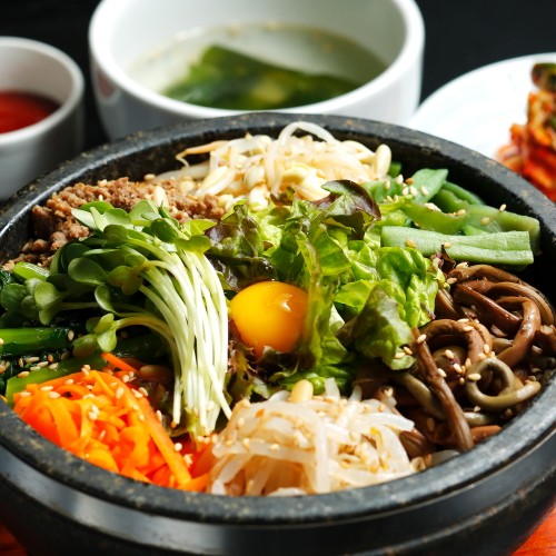 ランチ、ディナー共に人気の石焼ビビンバ!!豪快に混ぜて、おこげと一緒に食べれば美味しさアップ!!