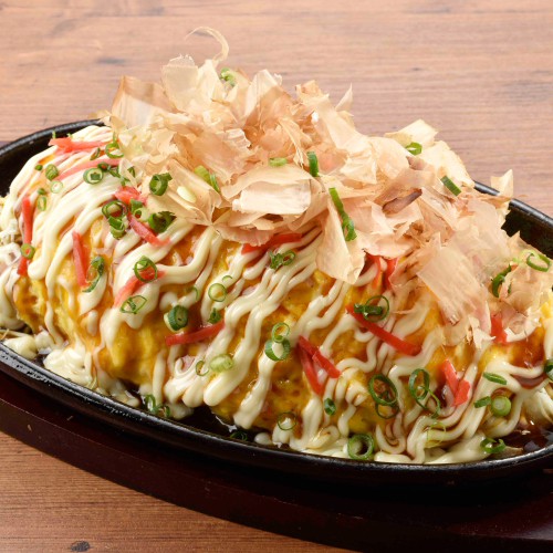 いろはの名物料理として登場以来大人気!!お好み焼きの中には、蕎麦がたっぷりと入っているのでお好み焼きだけでは満足できない方にもお勧めでボリューム満点!!