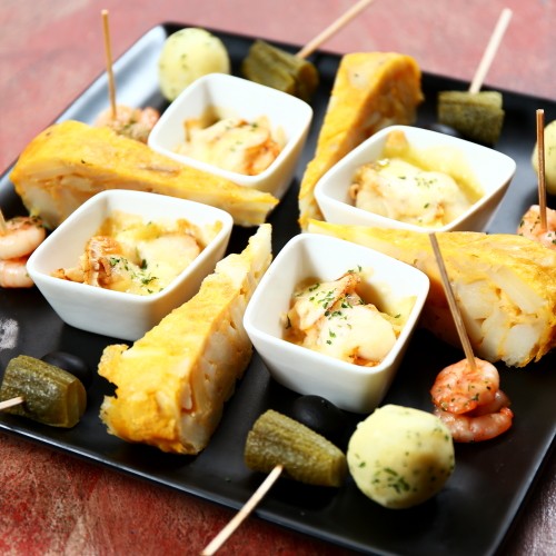 気軽に愉しめるタパスも豊富。スパニッシュオムレツやタコとアボカドのアリオリソース、スパイシーソーセージなど人気メニューが全て350円!!